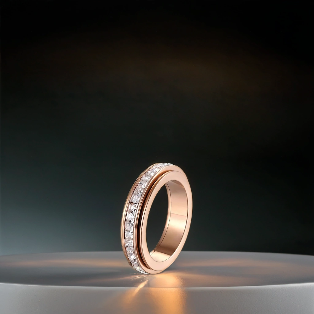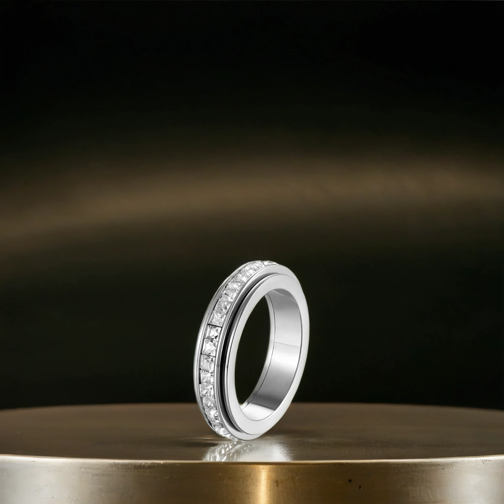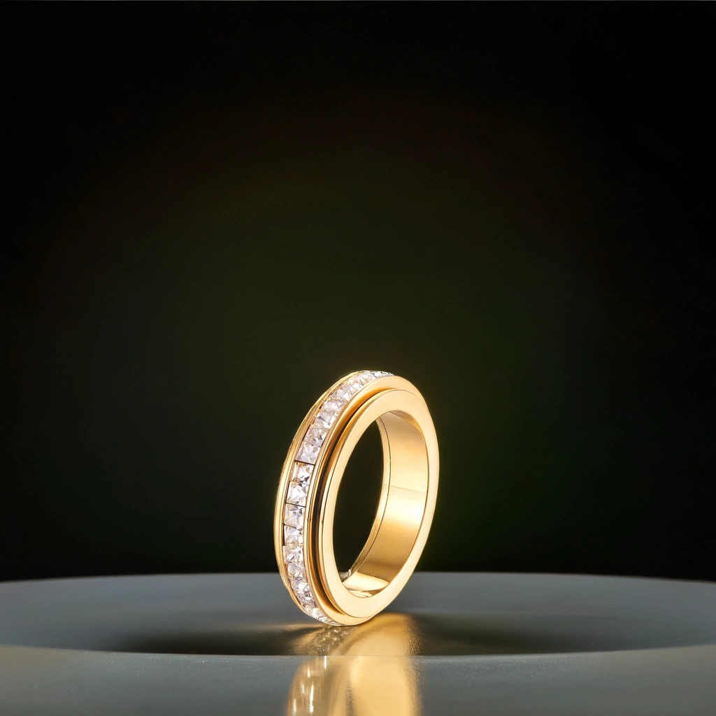 Unsere Ruheringe besitzen ein drehbares, funkelndes Außenband, das sich sanft und leise bewegen lässt. Durch das wiederholte Drehen entsteht ein beruhigender Effekt, der dir hilft, Stress und innere Unruhe abzubauen – völlig unauffällig im Alltag.